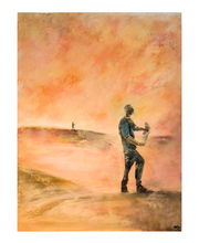 Il travaille essentiellement l’acrylique, ses peintures dégagent un jeu de lumière et de contraste ou l’obscure prend une forte présence tout en mettant en valeur la lumière. Des nuances bleutées renvoyant au calme, au rêve de jeunesse, à la spiritualité mais également à la mélancolie et la froideur contrastées par de chaleureuses et terreuses teintes ocrées.